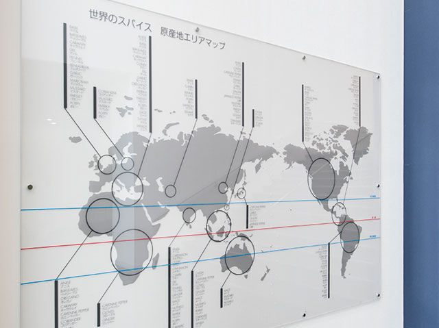 スパイスにまつわる資料も展示されています。胡椒のみならず、様々なスパイスと原産地の多さにびっくり!世界中のスパイスが、ここ足利に集合しているなんて、感慨深いです。