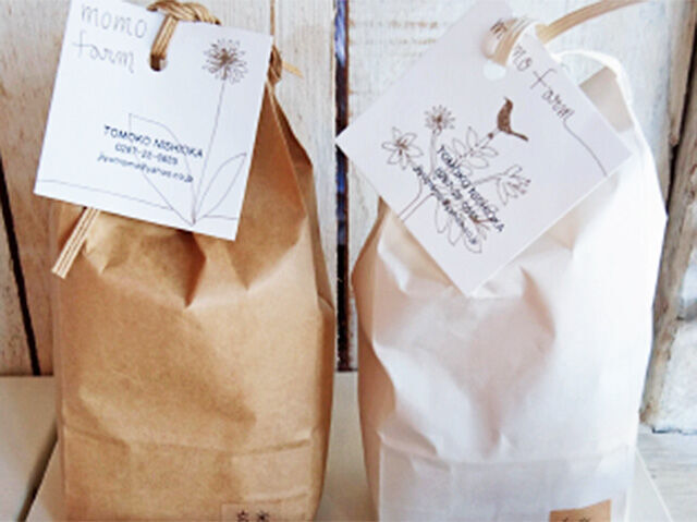 有機肥料で育てている「コシヒカリ」の他に、「ゆうだい21」や「とちぎの星」もあり。白米、玄米、米粉が選べます。オンラインショップや「焼きたて焼き菓子工房 Kabaco」で販売。