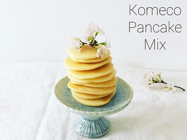 レシピ入りの「Komeco Pancake Mix」。混ぜて焼くだけなので簡単に作れます♪やさしい米粉は、お子さまのおやつにもオススメ。素敵なパッケージは、ちょっとしたギフトにも喜ばれそう!