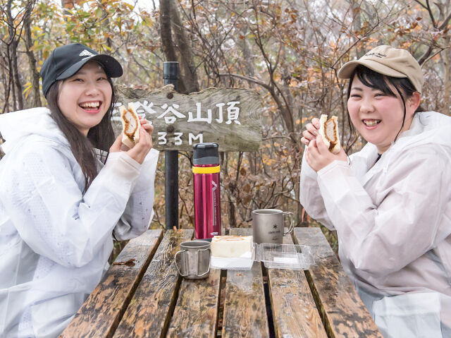 一帯は雨巻山など4つの山がつながるコースになっていて、登山ファンも納得の人気スポット。今回は、図の黄色のコースを進んで三登谷山山頂に到着。短めのコースだけど、体調を整えて山登りに臨んでね★