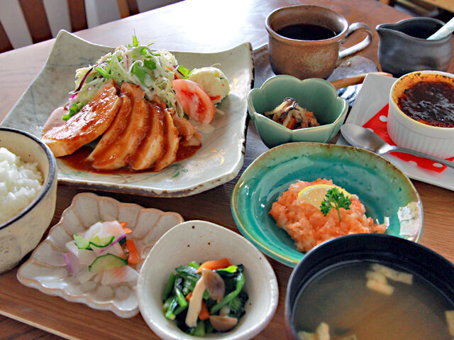 ロコモコにチキンステーキ、豚ロースみそ焼き、サーモンのタルタルソース、親子丼と日替わりで登場する定食は、毎日食べても飽きません!手作りで温かみのある味わいは、旬のお野菜をたっぷり使った小鉢からも感じられて、心がホッと和みます。
