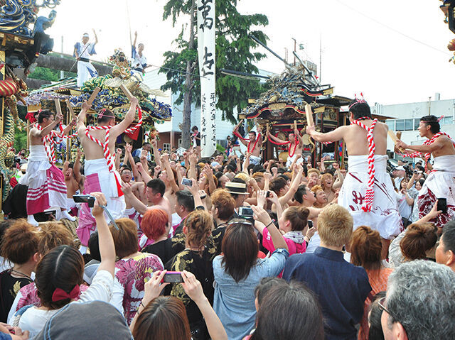 山あげ祭とは、国指定重要無形民俗文化財「烏山の山あげ行事」と八雲神社の神輿などで構成される那須烏山市最大のお祭りのこと。今年は新型コロナウイルス感染拡大を受け中止となりましたが、毎年7月の第4土曜日を含む金曜・土曜・日曜の3日間で開催されています。永禄3年(1560年)に、疫病防除・五穀豊穣・天下泰平を祈願したことが始まりで、その祭礼の奉納余興として、当初は相撲や神楽獅子等が行われていました。「山」とは、網代状に竹を組んだ木枠に烏山特産の和紙を幾重にも貼りその上に山水を描いた「はりか山」の事です。その「山」を人力であげる事から、「山あげ」と呼ばれるようになりました。また、美しく個性的な舞踊の歌舞伎演題や、常磐津の三味線と唄にのって地元の踊子が洗練された踊りを披露する日本一の移動式野外劇など見所たくさんの祭りです。