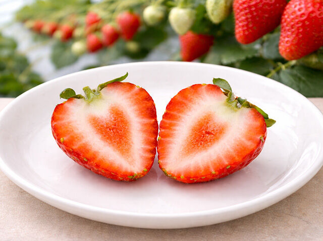 夏秋どり栽培で生まれた、めずらしい“夏のいちご”。鮮やかな赤色と、切ると現れるハート形の断面が印象的です。甘さの中にほどよい酸味があり、後味はすっきり。暑い季節でも食べやすく、ケーキやスイーツとの相性も抜群です。見た目の可愛らしさと爽やかな味わいで、ひと味違ういちご体験を楽しんでみませんか。