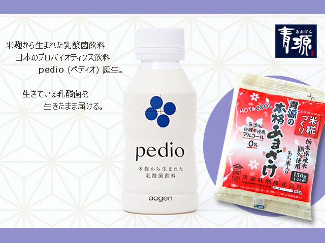 アルコール不使用・砂糖不使用のあまざけは、米こうじ本来の自然の甘さで、原料は100%栃木県産!pedio(ペディオ)は米こうじのやさしい甘みと、独自の乳酸菌「ペディオコッカスアシディラクティシーAS19」の爽やかな酸味で、赤ちゃんからお年寄りまでOK★乳製品のアレルギーを持っていても安心です。