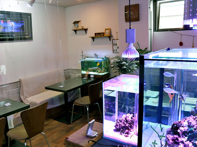熱帯魚が泳ぐ癒し空間でランチやデザートを♪