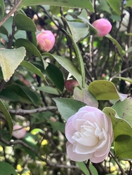 昼間は、晴れていましたが夕方は、曇ってきて冷たい風も吹きはじめてきたので足早にウォーキングε=ε=(ノ≧︎∇︎≦︎)ノサザンカは、沢山植樹されてますが、数少ない椿を見つけ寒さが少し緩むような気持ちになりました(ღˇ◡︎ˇღ) (訪問:2025/03/06)