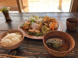 ひのくもさんのお食事を目当てに、ドライブイン茂木に伺いました。ここのところ、開店時間ちょうどに伺っても駐車場はいっぱい、泣く泣く諦める…と言うパターンを何度も繰り返していたので、今回は開店15分前に到着するように伺いました。…が、車はとめられましたが、お席は満席。しばし待つこととなりましたー。待っている間も、近くの梅の花を楽しんだり、山小屋の方をのぞいてみたり。ゆったりとした時間を楽しませていただきました。電話が鳴り、無事に席に着いてから改めて外を見ると、晴れ渡った青い空に、少しずつ芽吹く草花を見ることができました。こちらのお店は、この美しい里山の風景も魅力のひとつです。今回もプレートランチをいただきます。どのおかずも優しいお味。焼く、揚げる、煮る、茹でるなど、様々な調理方法で味付けも工夫されているので、何度いただいても新たな感動を覚えます。いつ伺っても満席なので、次回も時間に余裕を持って伺いたいです。美味しい幸せをありがとうございました。ごちそうさまでした〜。 (訪問:2026/03/07)
