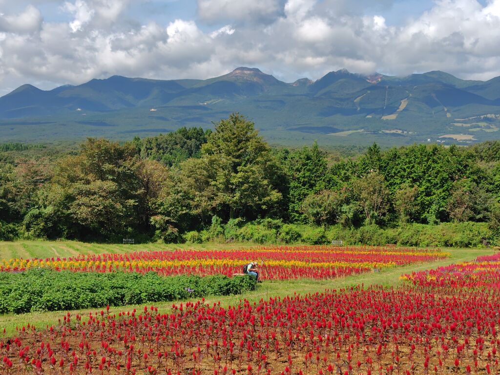 晴れ間が出てきたので、こちらへケイトウを見に行きました。奥の方は終わりに近かったのですが、入り口付近が綺麗に咲いていて、那須連山もはっきり見えて、素晴らしい景色に感激しました。入場料を払う価値がありました。次は春のチューリップが楽しみです。 (訪問:2025/09/19)