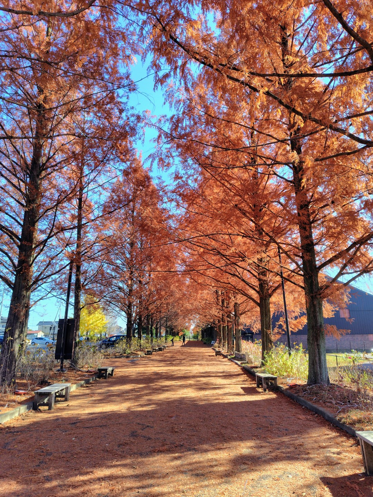 メタセコイアの紅葉がきれいと聞き、行ってみました。今までも公園横を車で通っていましたが、メタセコイアがサークルのように植樹されていたことに、改めて感動しました。 (訪問:2023/12/03)