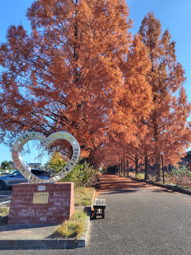 紅葉が良い頃かなぁ〜♪と、野木町のメタセコイア並木を見に行ってきました。ピークは過ぎたのか 落葉もしていましたが、道がオレンジに染まって良い雰囲気 ( ꈍᴗꈍ)♪ 気持ちよくお散歩できました。ハート(恋人の聖地)のオブジェもあり、沢山の方が写真を撮ったり楽しんでいました。 (訪問:2025/11/29)
