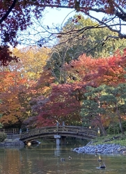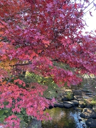 今年もメタセコイアの紅葉が見頃を迎えました。夕方に訪れると、沈む夕日の光に照らされ、黄金色に輝いていました。昭和大池の水面に鏡の様に映り、息をのむ美しさでした。沢山の人が紅葉狩りに訪れ、思い思いにカメラをかまえ、紅葉を楽しんでいました。日本庭園周辺のモミジも赤く染まり、着物を着たカップルが紅葉をバックに結婚写真を撮っていました。散歩しながら秋が深まる公園を満喫出来ました。 (訪問:2024/11/27)