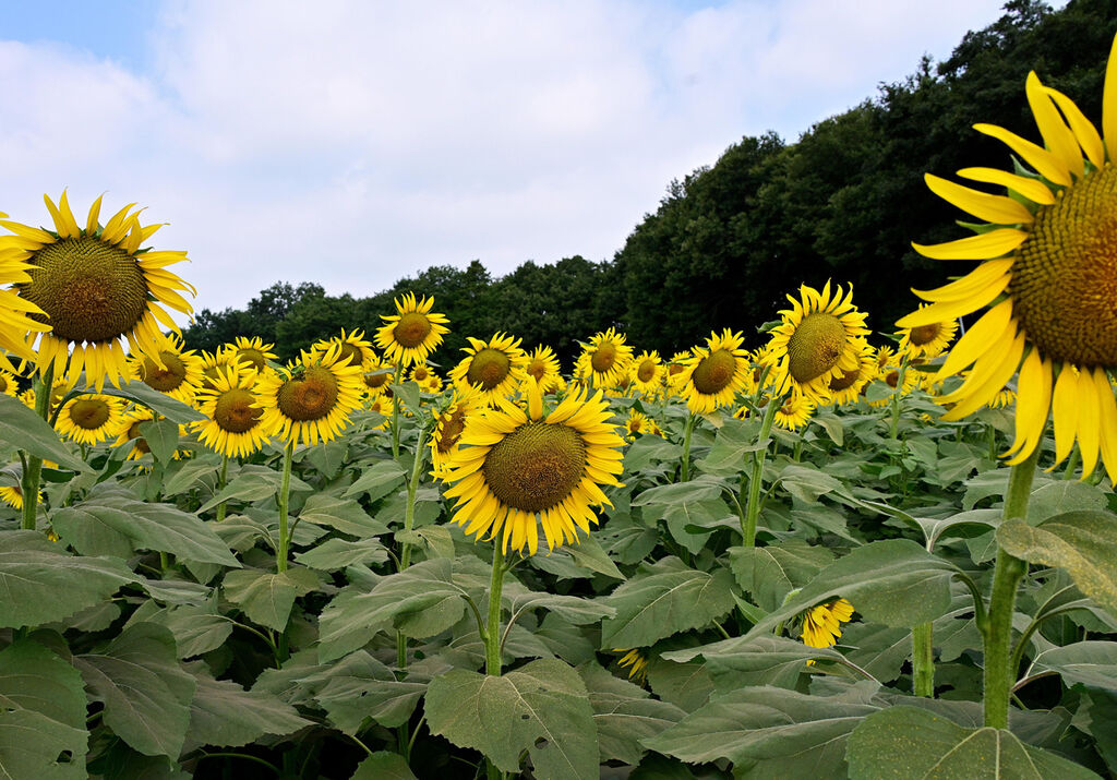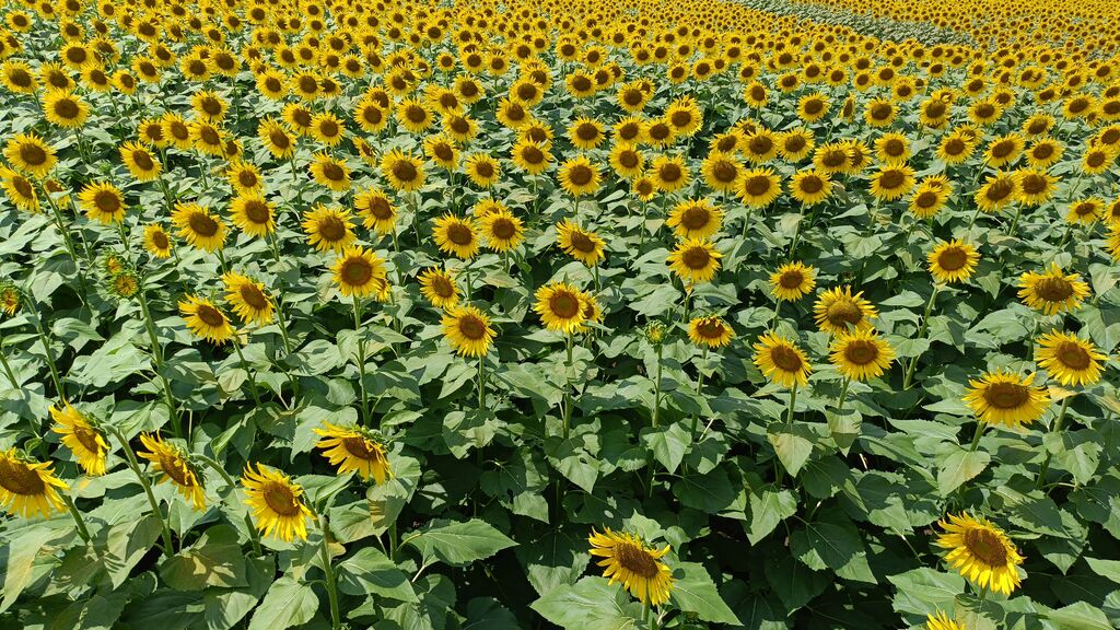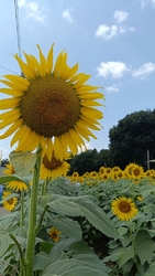 掲載:2025/09/01ここは知っていたのですがなかなか行けず今回初めて行ってみました。当日はかなり暑い日でしたが沢山の人が訪れていました。ここは畑の中に歩道が設けてありそこを歩いて大輪のひまわりを観て楽しめます。沢山の大輪のひまわりが所狭しと咲いているのですが小輪のひまわりが咲いている所もありましたまた、展望台も設けてあり畑全体を観ることもできました。最近大輪のひまわりあまり見かけなくなったのですが久しぶりに見て楽しめました。 (訪問:2025/07/26)