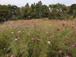 そろそろコスモスも見頃になっているかと思い、伺いました。生憎、曇っていて風も強かったですが、色とりどりのコスモスが揺れている景色も綺麗でした。5分~7分咲きくらいだったので、まだまだ楽しめそうです。綺麗に整えられた芝生でのんびりしたり、川辺にいたトンボを見たり、喧騒を忘れてゆっくりできました。 (訪問:2025/10/09)