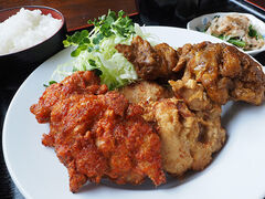 前回初めて行き、気に入ったので2回目です。土日もランチがあるのが嬉しいです。今回は野菜たっぷりチキンにしました。チキンの下に野菜が沢山ありました!今野菜が高いのでビックリ!ソースは生姜ダレでした。ご飯も大盛り無料なのも有り難いです。12時過ぎたら次々にお客さんが増えました。皆さん常連さんに見えました。