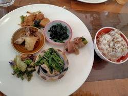 たまたまインスタで見つけて、行ってみたいなぁという思いに駆られ、先輩をお誘いして、予約しちゃいました(*^^*) お店が移転したみたいで、なかなかたどり着けず…、改めて住所を入力したら無事に着きました(汗)可愛らしい店内、猫ちゃんグッズが多いです(ΦωΦ) お目当てのお万菜ランチをゲットする事ができました(^^♪限定7食だそうです❢ お野菜中心ですが、ぶり大根や、肉巻きもありました٩(๑´0`๑)۶ まさにおふくろの味って感じで、超ヘルシー☆彡 体に優しい〜〜〜♡お味噌汁も、薄味だけど出汁が効いています。ごはんできたよ、店名どおり、ほっこり和食が嬉しいです♪♪胃にもたれず、罪悪感なし!(笑)ごちそうさまでした❣美味しく頂きました!!