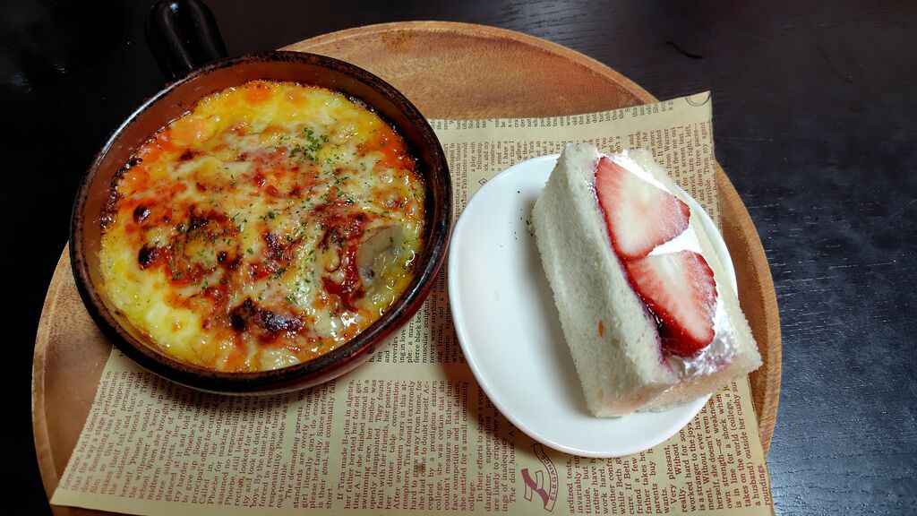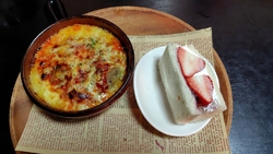 今回も栃ナビポイント交換を利用して、食べたかった「チーズスパランチセット」を注文しました。とても嬉しくなるメニュー内容です、サラダ・チーズスパ・フルーツサンド・デザート・ドリンク付きです。チーズスパは熱々でチーズたっぷり、フルーツサンドは、いちご・バナナ・りんごがサンドされていました。美味しくて大満足!!ここの一押しメニュー、オススメです。 (訪問:2026/02/21)