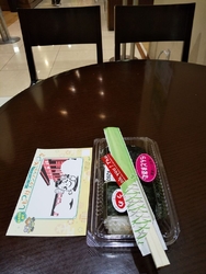 朝ご飯にウメ サケのオニギリ260円税込みを購入しました。事務所で栃木県民限定「しもつけスタンプラリー」のラリーポイントのお店なのでスタンプを押印して頂く途中にカンピくんが椅子にデーンと座っていてリラックスしていました。押印して頂いたあと店内のテーブルで早速頂きました。下野市産のコシヒカリを使ったオニギリはお米の一粒一粒がシッカリモチモチしていて米だけでも美味しいですが具材とツヤツヤして香の良いノリが更に輪をかけて美味しさがパワーアップしていました。 (訪問:2020/11/08)
