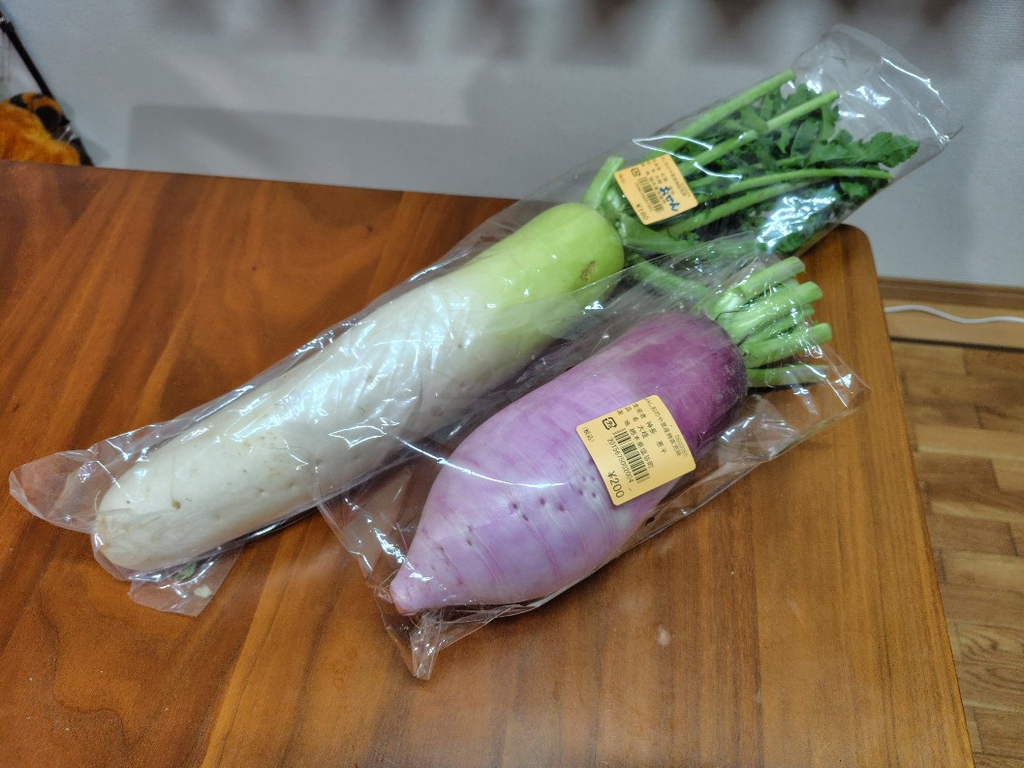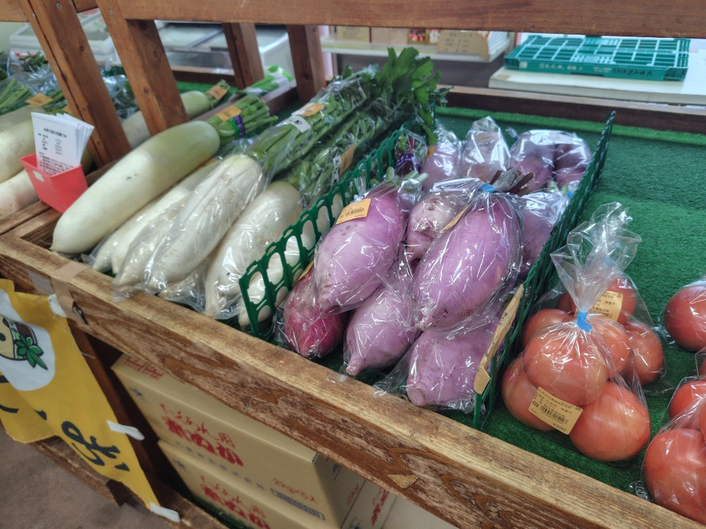 お昼すぎに伺いましたが、スーパーでは見ない新鮮野菜、果物がまだまだ並んでいました。サラダに彩りを加えてくれる紫大根と、これからの季節に活躍する、おでん大根をゲット。柔らかくダシをいっぱい吸い込むんだよぉ〜( ꈍᴗꈍ)♪ (訪問:2025/11/09)