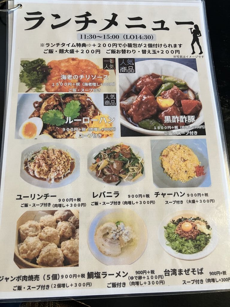 土曜夜の19時頃に行ってみました。着いた時は空いてましたが、続々と来客があり帰る頃には、ほぼ満席でした。注文したのは小籠包プレーン(4ケ)、油淋鶏(小)、レバニラ炒め(小)にご飯セット(白米、キムチ、スープ)を付けました。有りがたい事に牛スジ煮込みをサービスで頂きました。お料理の(小)は1~2人前との事でしたが結構ボリュームがあり、レバニラのレバーが厚めでゴロゴロ入っており、食べきれなくて持ち帰りパック(¥30)を購入しレバニラ炒めはテイクアウトしました。メニュー表以外に店内のボードに気になるメニューが沢山ありました。激辛麻婆麺が、どれだけ激辛なのか気になるところです。サービスの牛スジ煮込みも味が染みしてて柔らかくて子供も食べやすいと言う程に美味しかったです。ありがとうございました。 (訪問:2024/09/28)
