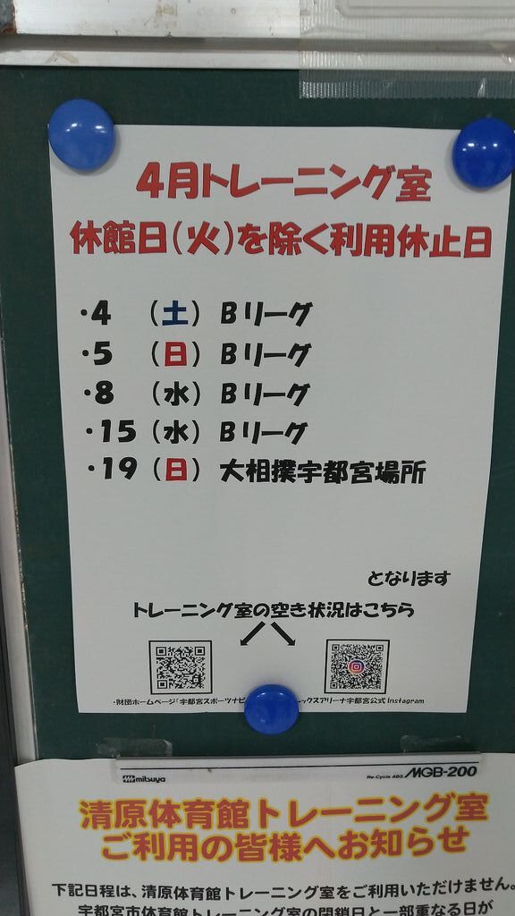 暖かくなってきたおかげか、トレーニングにいそしむ方が増えてきたように思います。昨日のブレックスは僅差の敗戦で残念でしたが、悔しい気持ちを運動のモチベーションに変えて頑張ってきました! (訪問:2026/04/09)