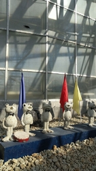 久しぶりに伺いましたが、相変わらずたくさんの人で賑わっていました。外のテントでは新里ねぎがたくさん並んでいて、2,3束まとめ買いしている人もいました。新鮮な野菜や果物が安く買えるのはありがたいです。そういえば、ローズガーデンの方で2階にも上がれるようになったよなぁ~と思い、行ってみました。愛嬌のあるカエルさんたちがお出迎えしてくれて、ほっこり癒されます。 (訪問:2025/12/04)