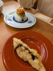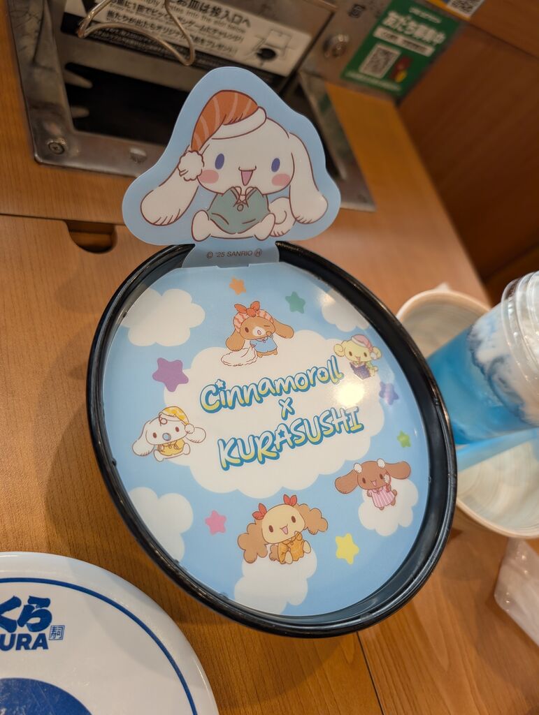 シナモロールとのコラボキャンペーンが今日から始まりシナモン好きな子供と行きました。学校帰りの夕方5時台のだったので店内は空いていましたのでゆっくり食べることが出来ました。貝柱の軍艦といわしが美味しかったです。子供はシナモロールコラボのたらこうどんが美味しかったそうです。びっくらポンではマスキングテープが当たりました。お会計2500円以上だったのでクリアファイルももらいました。 (訪問:2026/01/09)