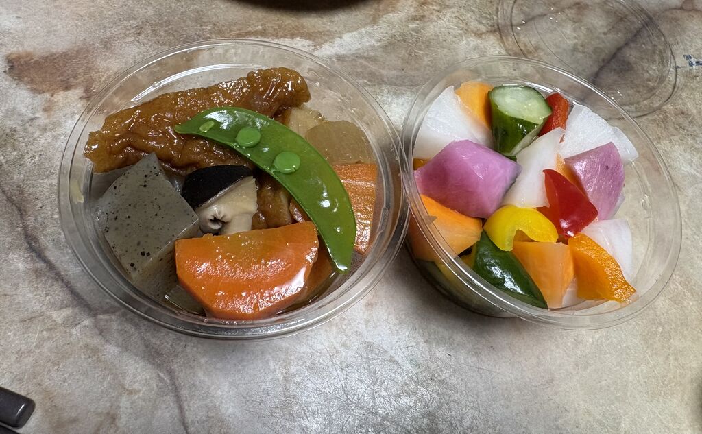 2日連続買ってしまいました。今日は、お腹が空いていたのでビーフカレーにしました。柔らかく煮込まれたお肉がゴロゴロしていてとても美味しかったです!お惣菜は煮物とピクルスを買いましたがこれもおいしかったです(^^) (訪問:2025/12/06)