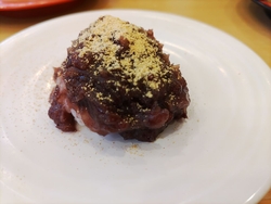 サーモン巻天・ふわもちあずき団子・おはぎ・おはぎきな粉かけをいただきました。席に着き、早速お茶をいただこうと、手を伸ばした時、即目に入ったのが、”和スイーツあずき”の文字。お寿司を食べに来たのですが、心は”あずき”に向かってしまい、迷うことなく注文してしまいました。いただいたあずき団子、もっちもちでやわらかで、すごいおいしかったです。あずきの甘さがとてもいい感じ。おはぎもおいしかった。あずきがたっぷり。きな粉かけも、あずきの甘みにきな粉のこうばしさが加わって、まじ美味でした。お寿司屋さんで、こんなにおいしい小豆メニューに巡り合えるとは思わず、感激です。唯一いただいたお寿司のサーモン巻天も超美味でした。店内揚げなので、衣がかりかりでさくさく。温かくてすごいおいしかったです。平日にお伺いすると、のんびりできるだけでなく、平日限定のお得なランチメニューもあるので、またお伺いしたいです。 (訪問:2025/07/11)