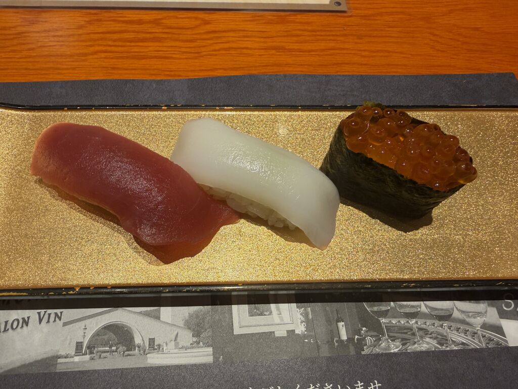 近くで仕事の集まりがあったため同業者3人でランチをしました。昼休み1時間中に食べて戻らなければならないため、席は予約しておきました。迷った挙句【自家製和牛ハンバーグと寿司5貫(1850円税込)】にしました。お昼からお寿司とハンバーグが食べられるのは贅沢です。寿司ネタに湯葉があるのは珍しいし美味しいです。ハンバーグはジューシーです。 (訪問:2024/10/29)