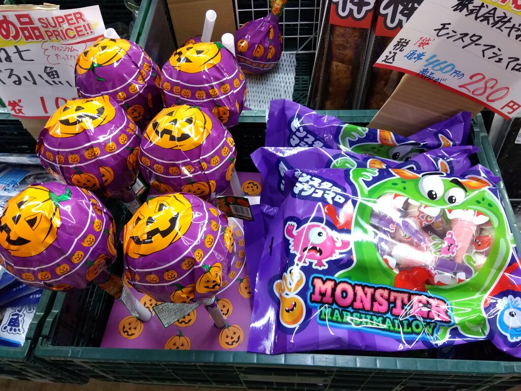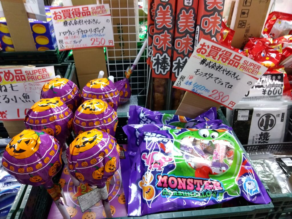 インパクト大!のハロウィンのお菓子発見しましたぁ(≧▽≦)♪超〜大きなかわいいキャンディの包みにた〜っくさんアメちゃんが入っています♪さらに超お買い得〜w(°o°)w☆☆☆他にもワクワクなお品が盛りだくさん♪お野菜やフルーツだけじゃないのがGood〜(^^)bまた楽しみにおじゃましま〜す( ꈍᴗꈍ)♪ (訪問:2025/10/23)