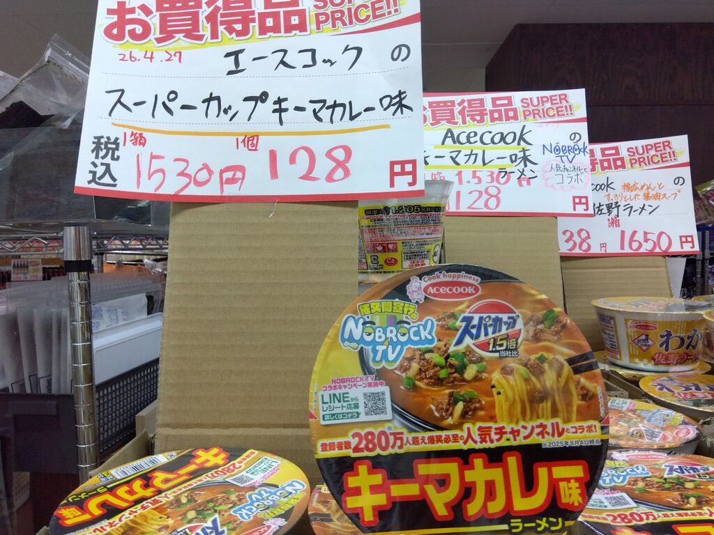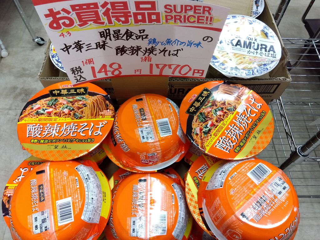 以前お買い得だったカップ麺がと〜っても美味しかったのでリピ買いです(^^)v濃厚味噌バージョンの他に1点だけワンタン中華そばを発見♪楽しみです〜o(^∇^)o♪他にもお買い得で魅力的なカップ麺がもりもりなので要チェックです( ꈍᴗꈍ)♪ (訪問:2026/01/21)