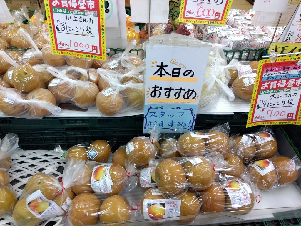 最早、わたしの人生のパートナー♡と言っても過言ではありません。やさい&くだもの村さんなくしては、生活が成り立ちません^_^けんちん汁に入れる、牛蒡等をお目当てに来店。無事に購入しました。いくら季節が変わったと言えども、ひゃ...ひゃくえん???(・o・)驚きました。賞味期限も十分にあるので手に取りました。今日も収穫いっぱい。わたしの中では、毎回、収穫祭です。 (訪問:2025/10/25)