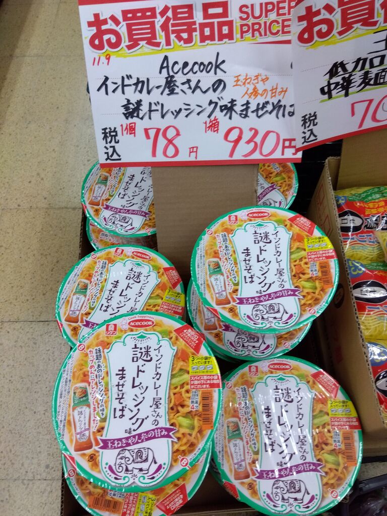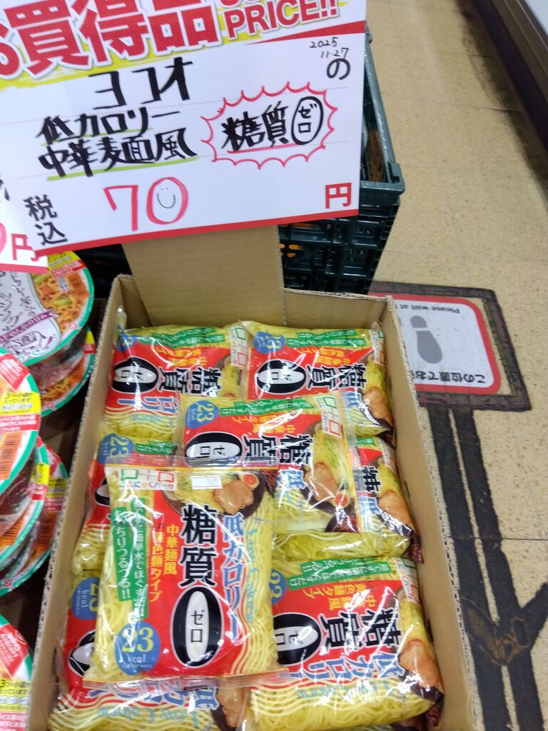 気になるお品、チャルメラの袋麺「バリカタ麺 豚骨」や「ふかひれスープ」などが特売でしたぁ(≧▽≦)♪リーズナブルだとつい試してみたくなっちゃいます~o(^-^)o♪お野菜やフルーツも相変わらずもりもりで、きのこ類もお得~☆特にエリンギさんが1パックなんと60円な〜り~☆迷わず買いです。毎回お買い得なお品を探すのも楽しみです( ꈍᴗꈍ)♪ (訪問:2025/11/18)