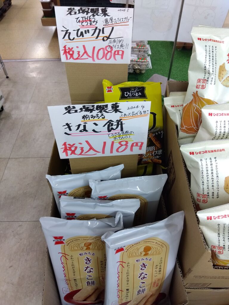 チョコレート菓子がお高いご時世ですが…ミニBitのウェハースバージョンが¥180〜☆前回に続きリピ買いしちゃいましたぁ(≧▽≦)♪税込なのもありがたいです〜(^人^)♪賞味期限間近の袋麺(5袋入)はなんと¥128でしたw(°o°)wあまりにお安かったので思わず衝動買いしちゃいました。お野菜だけじゃ〜ないのもうれしい楽しみです♪ (訪問:2026/02/24)