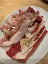 息子がランチに誘ってくれ、4人で訪問しました。私は寒かったので選べるランチの石焼辛クッパを。クッパ、お肉3種、サラダ、スープ、小鉢、デザートでは杏仁豆腐を。提供は早かったです。辛過ぎないクッパは食べ応えが有り、お肉や野菜も入って食べ易く、身体もポカポカ状態。お肉は種類ごとに、タレをつけて食べました。レモンのタレがさっぱりして良かったです。さくらパスでお肉をサービスしてもらい、楽しいランチを過ごしました。自宅から近いので利用頻度は多いのですが、足が不自由な母を、掘りごたつ様なテーブル席には、帰省している息子が居ないと引き上げられないので、伺う時は息子の帰省の時だけです。写真は頼んだ選べるランチとさくらパスで頂いたお肉です。 (訪問:2025/11/26)
