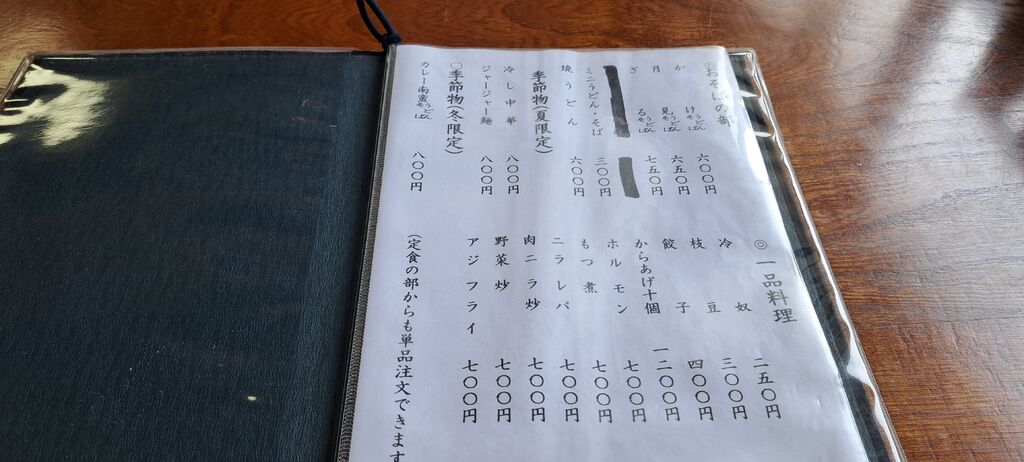 肌寒かったので温かくスタミナのある物を求めて来訪です。肉野菜炒めは出汁の効いた汁ごといただける美味しさ。餃子は小ぶりながらニラがたっぷりめでアツアツをいただきました。味噌ラーメンは優しい味わいで暖まりました。他に、ちたけうどんや黒チャーハンなど気になるメニューが色々あります。モツ煮も美味しそうでした。各テーブルごとにアクリル板と消毒液がありきちんと対策されています。お昼どきで店内は賑わっていました。ごちそうさまでした。 (訪問:2021/07/04)