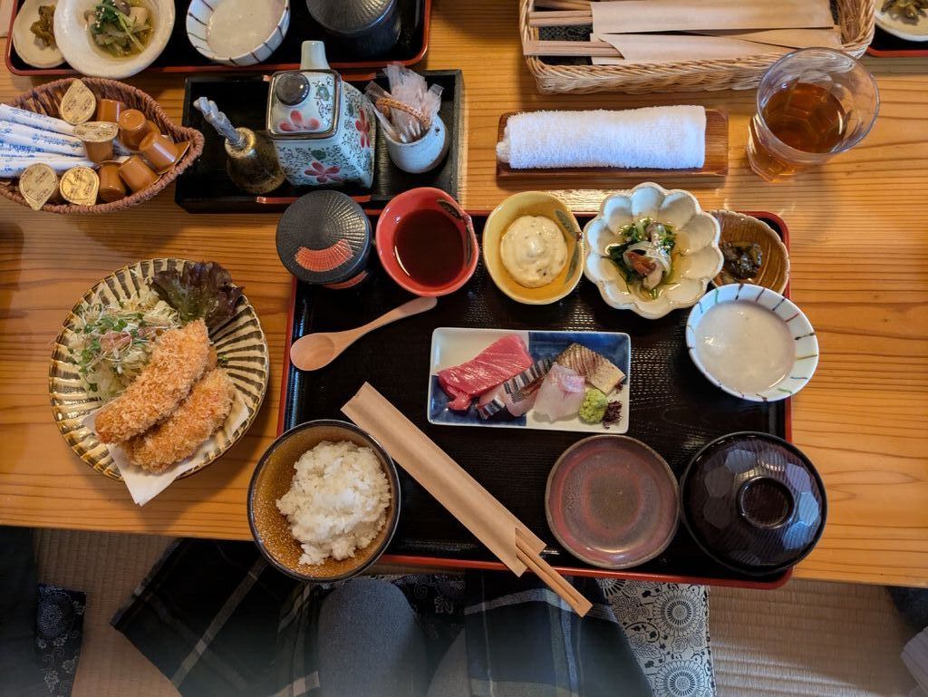 ランチにお邪魔しました。写真は『カキフライランチ』2160円です。いつも食べているカキの3、4倍の大きなカキが出てきてビックリしました!サクッとジューシーでかなりのボリュームでした。『焼き魚ランチ』1296円も注文しました。この日はサバかホッケを選べたのでホッケにしましたが、肉厚でおいしかったです。ランチは刺身、煮物、茶碗蒸し、小鉢、ごはん、味噌汁、デザート、コーヒーがついてとってもお得でした!古民家で落ち着いた店内で、店員さんが料理している所も見えるので、目にも楽しめました。 (訪問:2019/04/07)