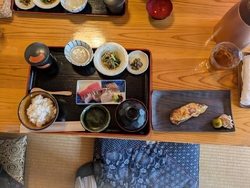 栃ナビで知って、今日は月曜日の平日ですが、初めて食べに来ました。11時開店に合わせて来て、予約をしていないことを話したら、ランチの時間は、予約と半々のようです。ところで、ランチは、西京焼きランチを食べて来ましたが、西京焼きが、身がやわらかく、ほど良いこげ具合でとてもうまく、そして、刺身は、何種類かの盛り合わせで、これもまたとてもうまく、ごはんをおかわりしてしまいました。茶碗蒸し、小鉢とこれもまたうまかったです。また、最後に、デザートとコーヒーまたはほうじ茶で、コーヒーにしましたが、デザートが、甘さ控えめで、サッパリして、とてもうまかったです。本当にうまかったです。ごちそうさまでした。 (訪問:2025/08/25)