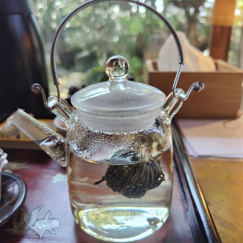 ずっと気になっていたお店です。午前中の用事が早く終わったので、思い切って来店してみました。住宅街の中にあります。すごくいい雰囲気の古民家です。庭も落ち着きます。お茶を選ぶとお茶菓子が付きます。花茶の工芸茶をチョイスです。点心メニューの三味一体もつけちゃいました。野菜まん、肉まん、あんまんです。とにかく肩の力が抜けるほど、落ち着けます。 (訪問:2026/04/03)