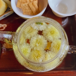 花茶の中から『菊花茶』を選んでみました。ポットの中には可愛らしい菊の花が咲き揃い、カモミールのようなさっぱりとした風味で美味しかったです。中国茶と一緒に持ってきてくださる注ぎ足し用のポットにお湯が飲みきれないほど沢山入っているので少しずつ注ぎ足しながらゆっくり愉しめました。桃源郷セットもひとつひとつとても美味しいです。本格的な中国茶をいただくのは初めてでしたが、お店の方が丁寧に説明してくださいました。また違う季節にも再訪したいと思います♪ (訪問:2026/03/30)