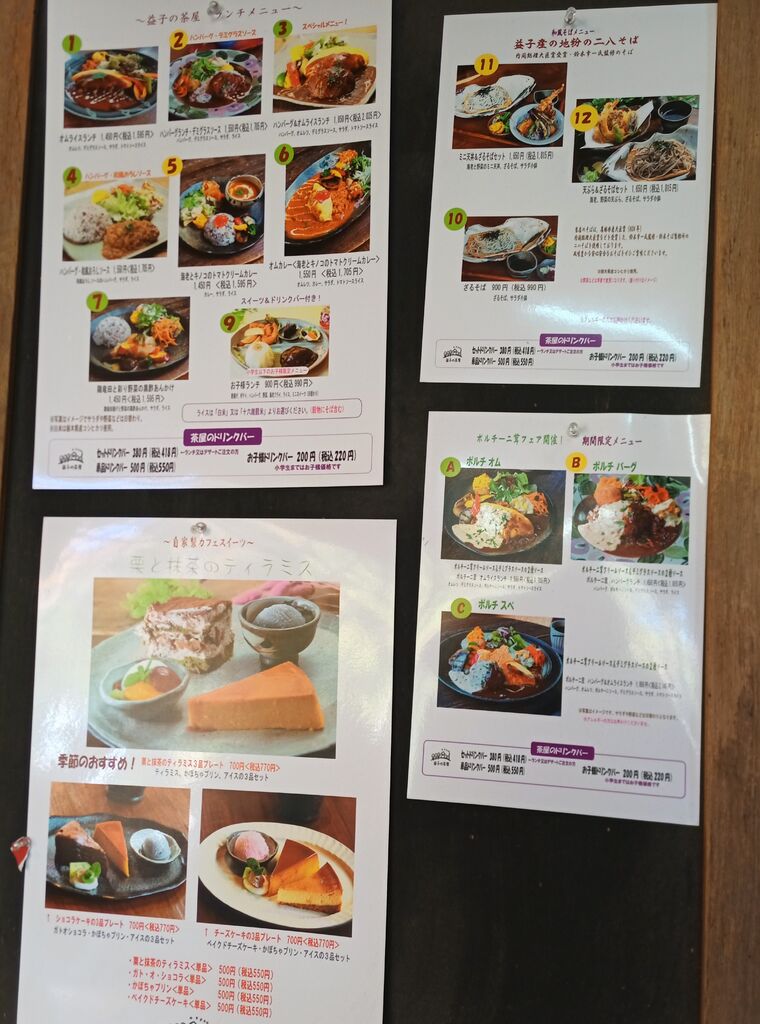 知り合いの個展を観に行って友達とランチに行きました。陶器市の準備なのかお休みのお店も多かったですが、こちらのお店の周囲にも陶器等が売っていたので散策しながら寄り道させて頂きました。最初に注文して支払いをしてから待つシステム。メニューはハンバーグやオムライス、カレー等に野菜がいっぱい添えてあるワンプレートがメインです。それだけでも充分だったと思いますが、季節の栗等を使ったデザートプレートや益子焼の器を使ったドリンクバーも魅力的で✨ついつい頼んで3000円位になってしまいました。ファミレス感覚で頼んでしまっては危険ですね(;´∀`)お料理はあっという間に運ばれてきて、ゆっくり食事を楽しめました。ステンドグラスの窓や緑が多い周辺の環境等雰囲気も良かったです。欲を言えばドリンクバー(お得セットで418円)やスイーツ等もう少し安い選択肢があればなあ…まあ益子焼を使っているのだし仕方ないかもしれないですね (訪問:2025/10/30)