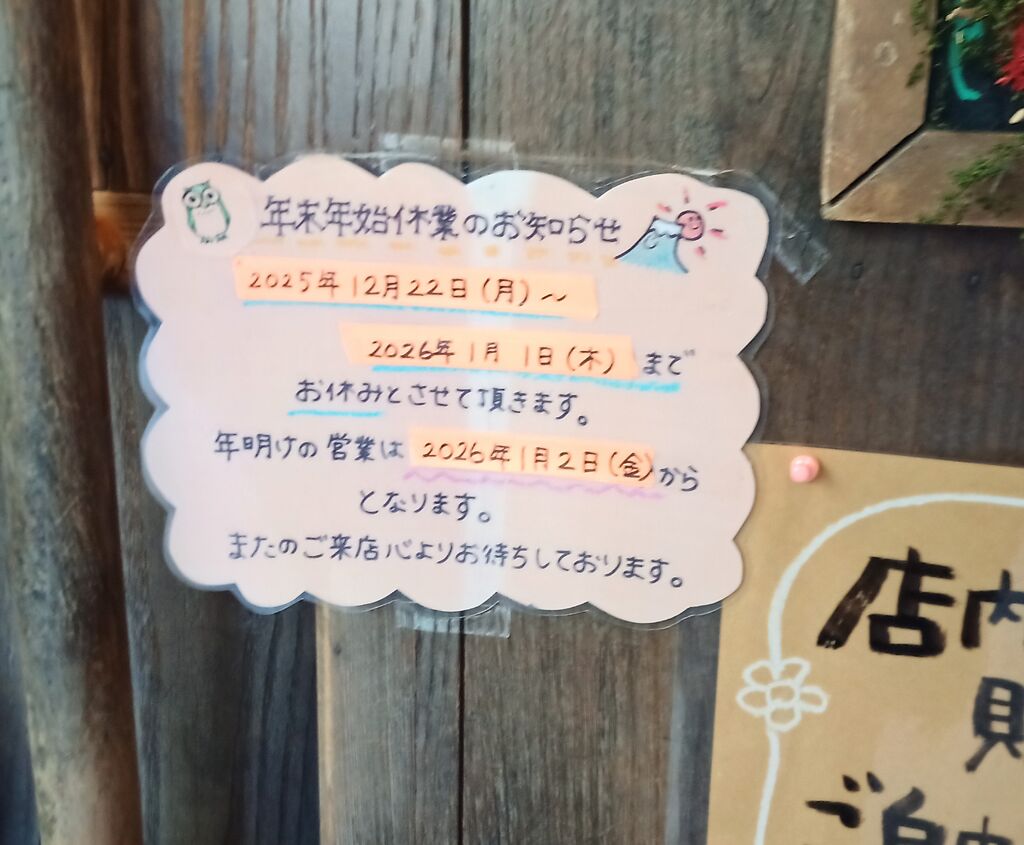 「栗と抹茶のティラミス3品プレート」とドリンクバーのセットを注文しました。メニュー写真ではアイスのセットになっていますが、寒いためかアイスかスコーンが選べるようになっていました。せっかくなのでスコーンにしました。スコーン、栗のティラミス、かぼちゃプリンの盛り合わせで、それぞれ美味しかったです。益子焼のちょこんとした豆皿も可愛いですね。年末は12/22〜1/1まで休業になるようです。 (訪問:2025/12/14)
