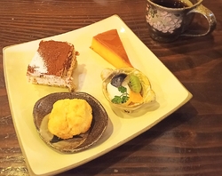チーズケーキ、かぼちゃプリン、キャラメルアイスの3品プレートをいただきました。こっくりとしたやさしい甘さのかぼちゃプリンが絶品です。ドリンクバーはコーヒーやアッサム等種類が豊富です。コーンスープやオニオンスープもあります。りんご酢が美味しくておすすめです。 (訪問:2025/11/02)