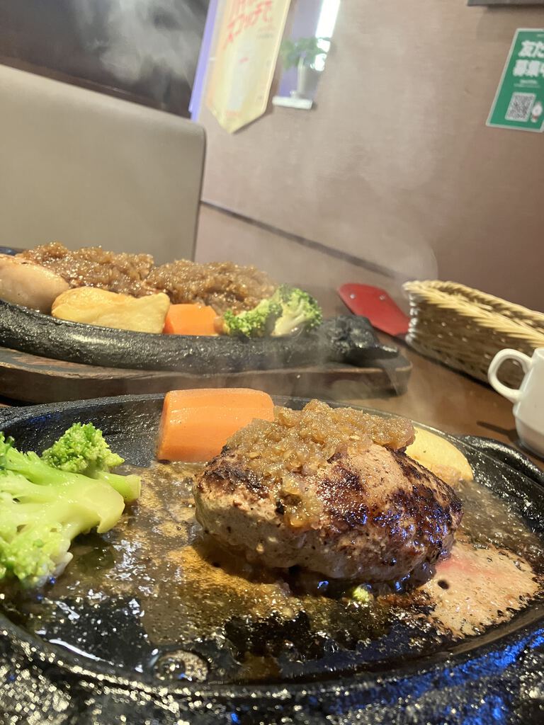 ランチタイムにポイント使用で来店です。1000円引きは嬉しい限りです。旦那さまはステーキでバイキング付き、私はレディースハンバーグを注文。鉄板アツアツおいしくいただきました。会計は1000円割引で、4450円の支払いでした。次回は本店にも行ってみたいと思います。ごちそうさまでした。入り口の自販機の冷凍ハンバーグを息子にお土産にしました。 (訪問:2026/01/18)