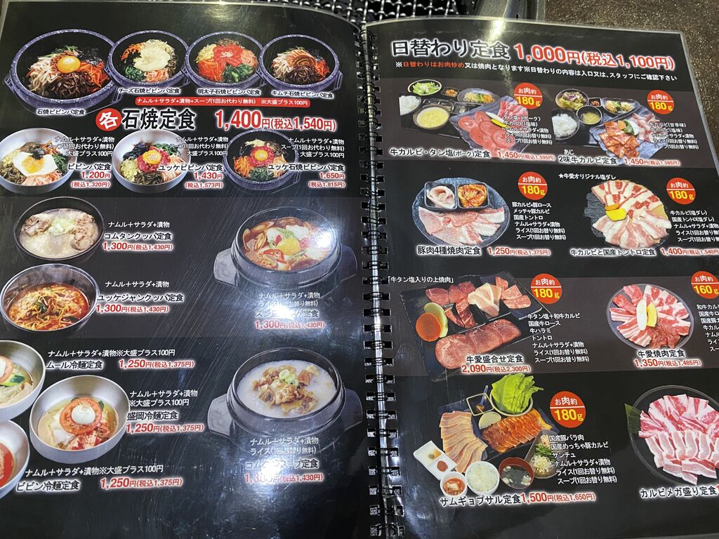 祝日 開店5分前には駐車場満車。沢山の人が並んで待ってます。和牛カルビと国産ロース定食 1455円、お肉も1.5倍 カルビがすごい柔らかい。これは美味しい。ランチのカルビスープハーフ400円をつけました。おかわりライスを入れてカルビクッパです。ランチハーフ冷麺 419円 スープが美味しい。飲み干してしまった。ハーフでも食べ応えあり。あとは、カリカリに焼いてある分厚めの海鮮チヂミ。何を頼んでもここのお店はうまい。 (訪問:2023/07/17)