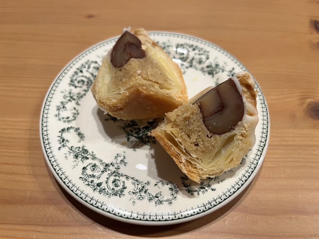 久しぶりに伺いました。秋らしい「マロンパイ」、大好きな「チョコオレンジパウンド」を購入。マロンパイは大きくしっとりした栗が丸ごと一つ入っていました。サクサクホロリとしたパイ生地、アーモンドクリーム、ラム酒の効いたアイシングの組み合わせが最高に美味しかったです。これはもう一度食べたい美味しさでした。かなりおすすめです。 (訪問:2025/10/05)