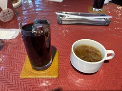 甥と2人で男子ランチしました♪オムライスが美味しいとの事ですが、ハンバーグ・ナポリタン・カニクリームコロッケ・プリンなども美味しいと…。ならばと大人様プレートにカニコロを付けて、とちナビクーポンを使いアイスコーヒーをオーダーしました♪そしてプリンをテイクアウトしました!ランチにはスープバーが付いています。スープは生姜の効いたオニオンスープ!とっても美味しいです。まもなくプレートが届き食べ始めると、オムレツの卵の味が濃くチーズもトロリ、デミソースとの相性もバッチリ!パスタは麺がモチモチ、エビはプリッ、ハンバーグは柔らかくどれもとっても美味しかったです♪カニコロもバッチリ!どれも大満足の味でした♪今度は妻を連れて訪問したいと思います♪ (訪問:2025/12/16)