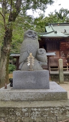 いちご一会スタンプラリーで訪れ社務所に貼られているポスターのQRコードを読み取りスタンプをゲットしました。フクロウの神社だけあってフクロウに関する御守りなどが主力です。ドレモふくろうのドングリ眼を強調しているものばかりなので見た目にも可愛らしいです。実際にフクロウが住み着いている神社なので幸福、金運、学問、健康、商売への強力な御利益が頂けると思いました。 (訪問:2022/07/23)