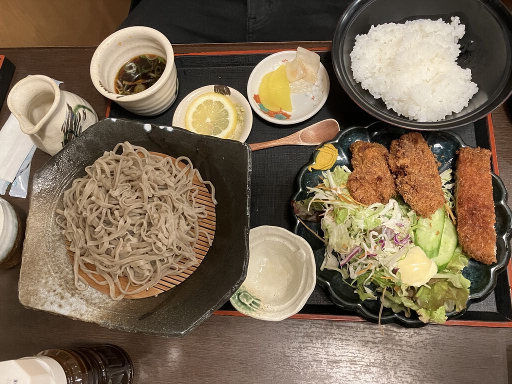 お昼にお邪魔しました。お店の前の駐車場は満杯でしたが、西側の道路を挟んだ所にも駐車場があり助かりました。【天ざるそば】を大盛りでいただきました。大盛りにしたので美味しいお蕎麦をたっぷりと堪能できました。海老の天ぷらもプリプリで美味しかったです。また、食べてみるまで分からなかったのですが(笑)牡蠣の天ぷらが珍しく、こちらも美味しかったです。 (訪問:2024/01/24)