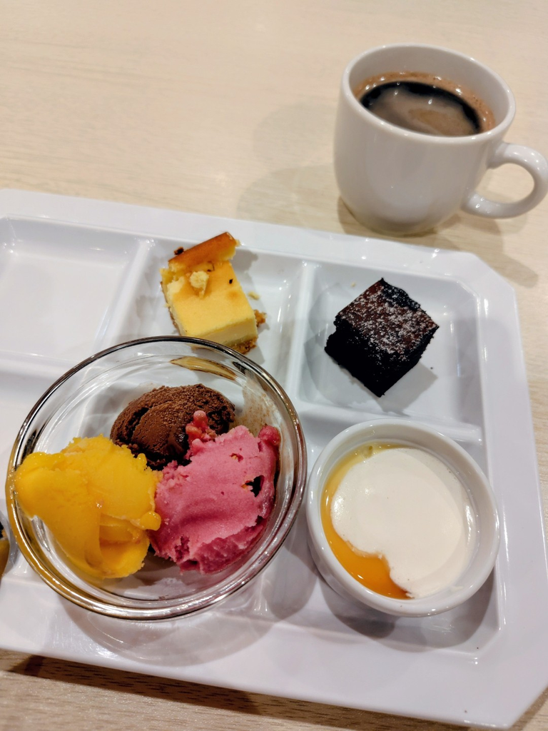 上のフロアでボーリングをした後に結果発表&懇親会で利用しました。最初から炭水化物祭りすぎてデザートに辿り着けませんでしたがどれもおいしかったです(^^) (訪問:2026/03/07)